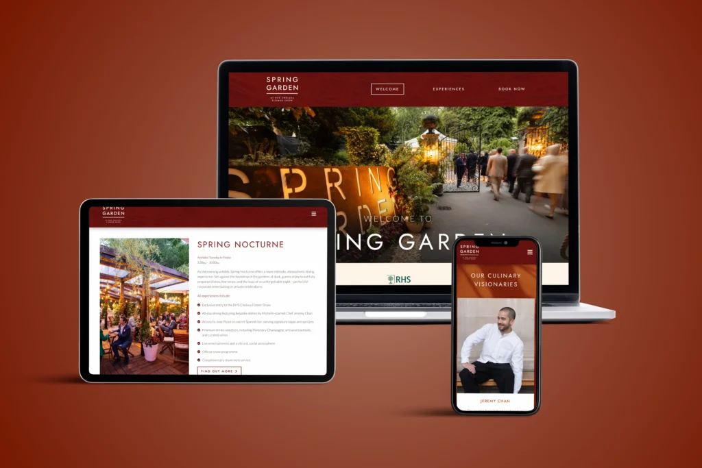 A vibrant, refined brand and website for Spring Garden – bringing premium hospitality to the heart of London’s most iconic flower show.