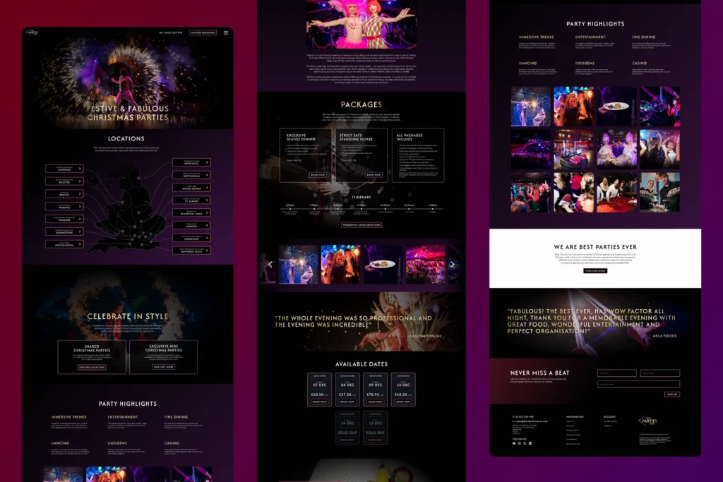We refreshed the identity and designed the website interface for Best Parties Ever — enhancing the user experience and amplifying the premium, immersive nature of their events, while development was delivered by a third-party team.